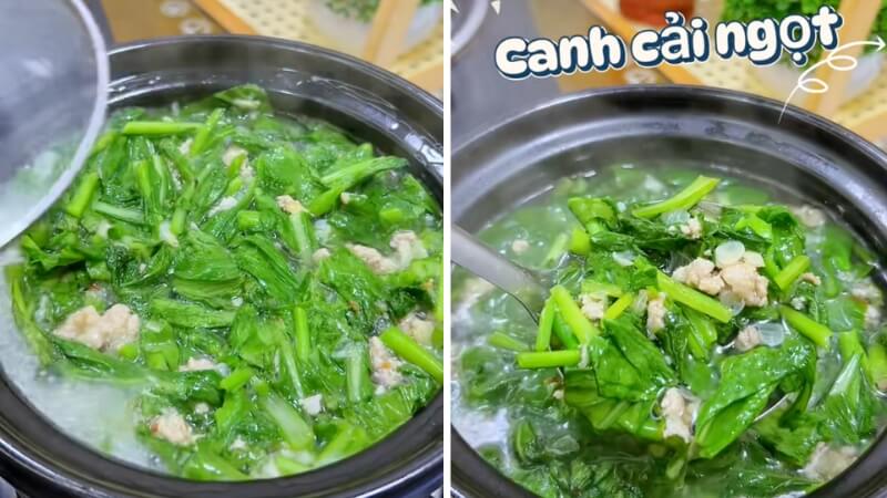 Bước 3: Thêm cải xanh vào và nêm nếm gia vị cho vừa ăn