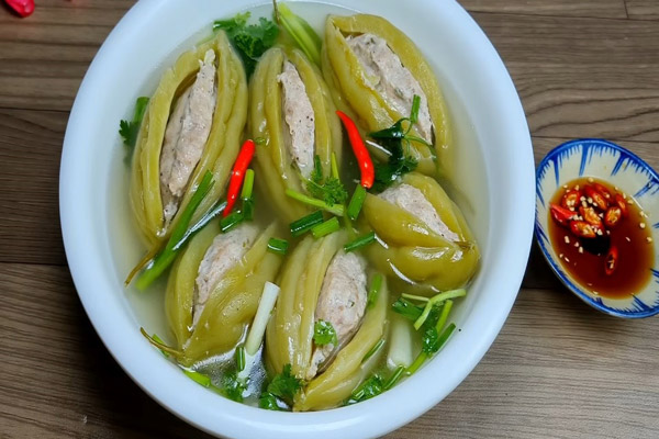 Canh khổ qua nhồi thịt heo không chỉ là món ăn ngon miệng, quen thuộc trong bữa cơm gia đình Việt mà còn là một món ăn dưỡng sinh mang lại nhiều lợi ích cho sức khỏe. Món canh này được yêu thích bởi vị đắng thanh mát đặc trưng của khổ qua (mướp đắng) kết hợp với vị ngọt đậm đà của thịt heo, tạo nên sự cân bằng hương vị hấp dẫn. Đặc biệt, với công thức chế biến giúp khổ qua nhồi thịt heo mát gan, món ăn này còn được biết đến như một phương pháp hỗ trợ giải nhiệt và thanh lọc cơ thể hiệu quả.