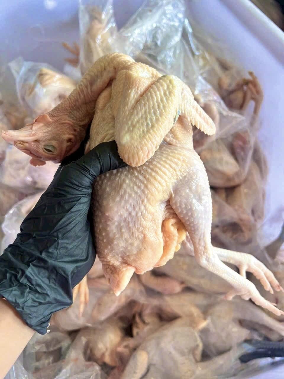 - Hình thức bên ngoài: Quan sát kỹ lớp da gà, nên chọn gà có da màu vàng nhạt tự nhiên, không có vết bầm tím, tụ máu hay các dấu hiệu lạ. Phần thịt gà phải săn chắc, có độ đàn hồi tốt khi ấn nhẹ vào. Kiểm tra xem gà có đầy đủ đầu, chân (còn nguyên vẹn, không bị gãy hay dập nát) và không có lòng. Tránh chọn gà có mùi lạ, nhớt hoặc màu sắc bất thường.
