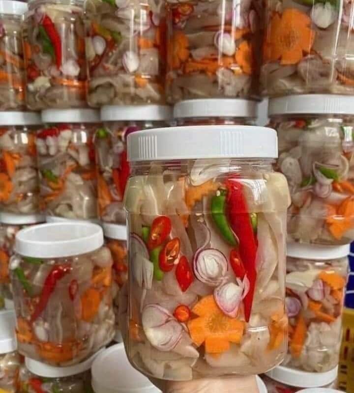 - Độ giòn và hương vị: Nếu có thể, hãy yêu cầu người bán cho thử sản phẩm trước khi mua. Tai heo ngâm chua ngọt ngon phải có độ giòn sần sật đặc trưng, vị chua ngọt hài hòa, cay nhẹ và thơm mùi tỏi ớt. Tránh mua sản phẩm có vị quá chua, quá ngọt hoặc quá cay.